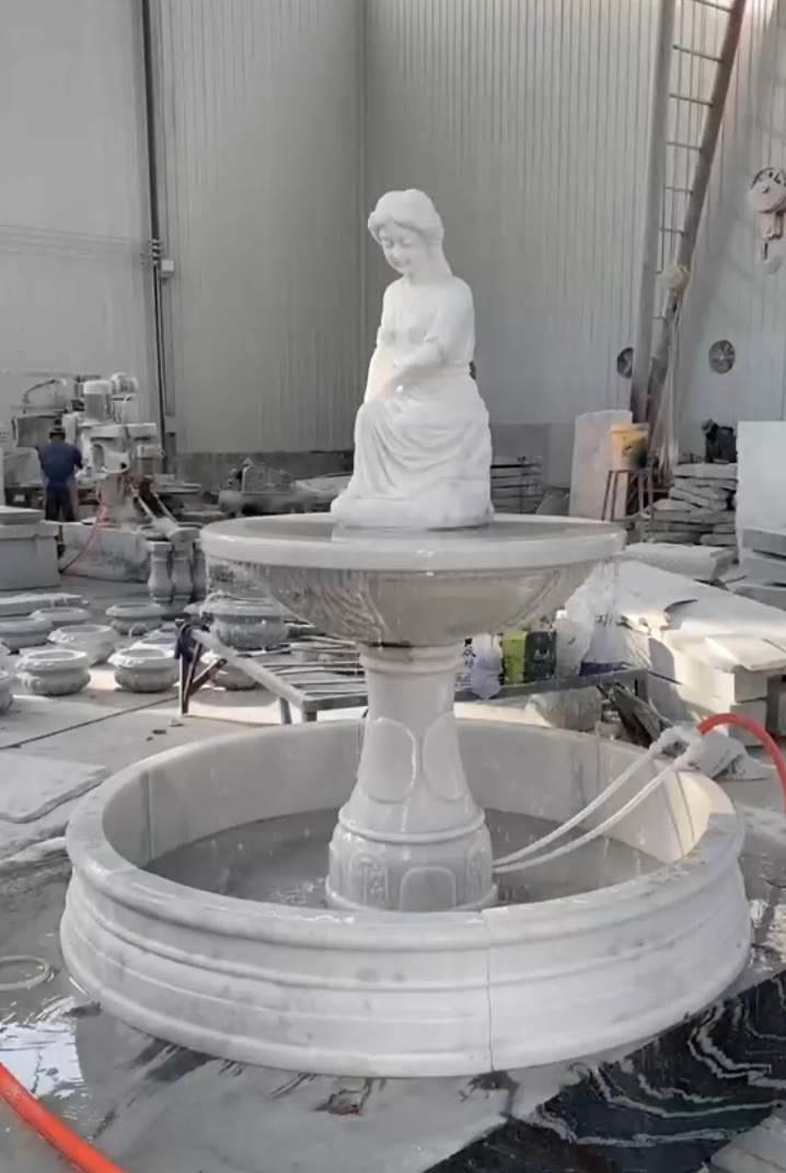 White Marble lady Sculpture Fountain in New Delhi