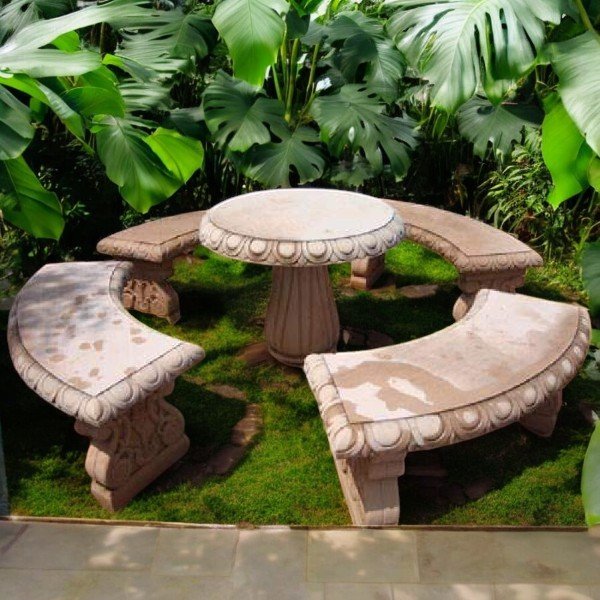 Granite Round Shape Table with carve Bench